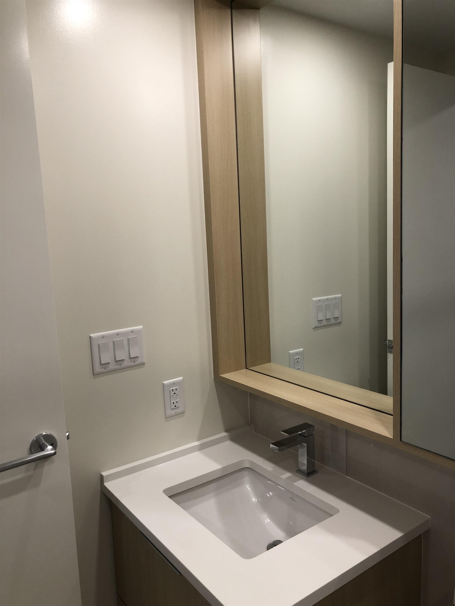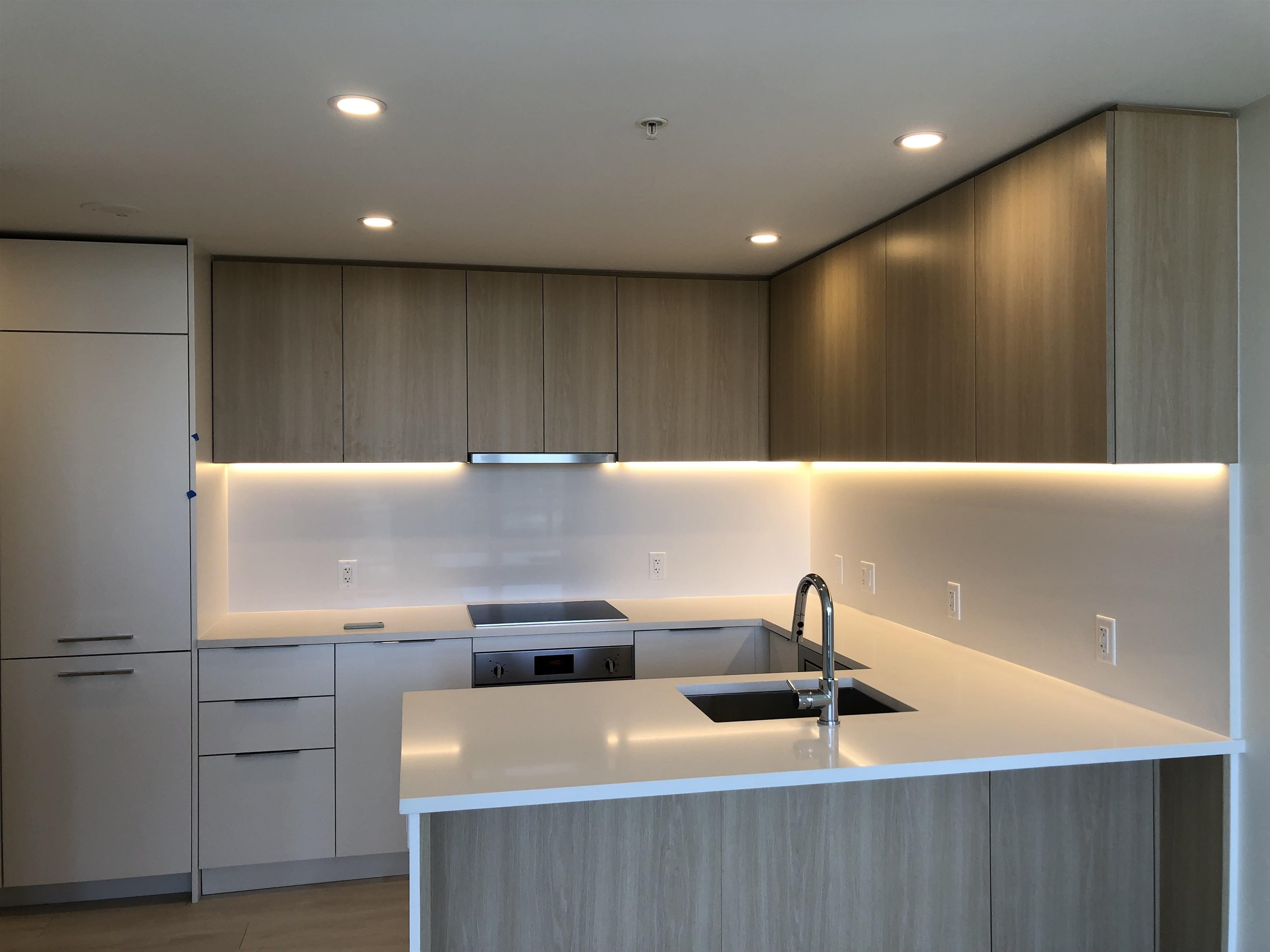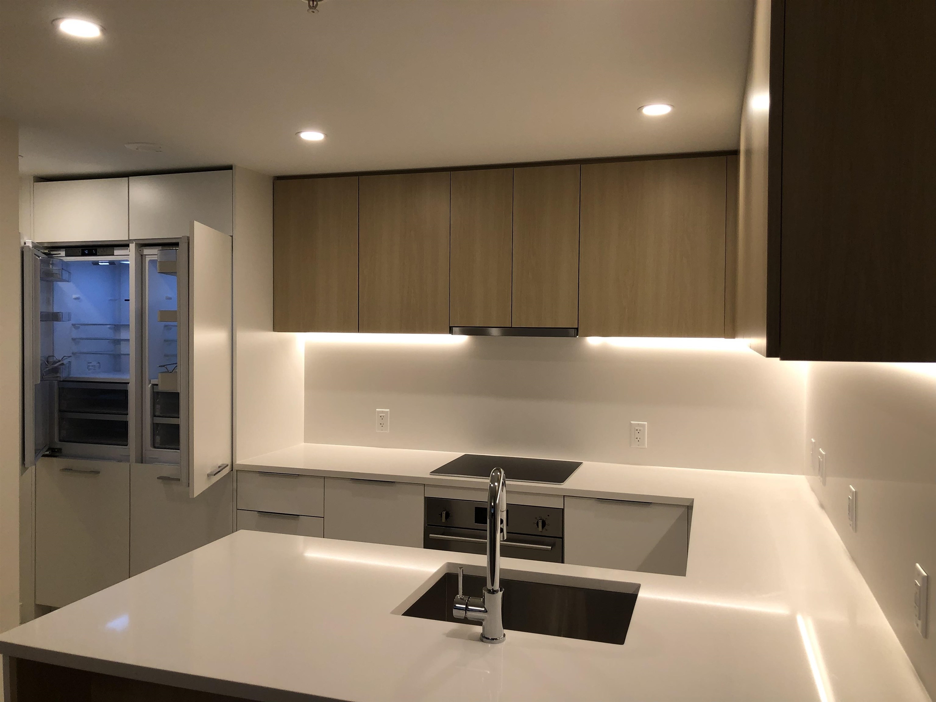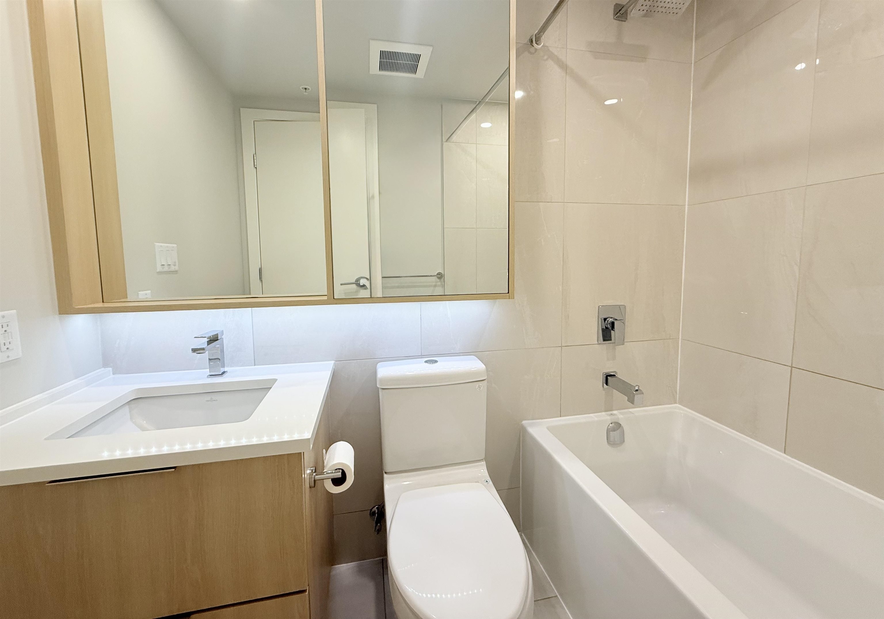 Linea is a luxurious & beautiful 3 years old building. Located in the University District of Downtown Surrey City Centre Skytrain station, library and Surrey Central Mall. Stunning water, mountain, & city view. Air conditioned with a smart thermostate, 8'8'' ceiling, gourmet kitchen, fridge, quartz countertop, top-of-the-line Blomberg appliances, induction cooktop, recessed LED lighting, Built-in roller shades, wide plank laminated floor. Over 14,000 sqft. of exceptional amenities including 2-level gym, children's playground, rooftop patio, lounges, games & media rooms. 1 parking and 1 storage. Pets & Rentals are allowed.